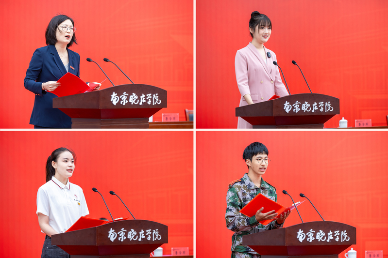 典禮上,文學院顏升同學帶領全體新生莊嚴宣誓,同學們緊握右拳、眼神堅定,錚錚誓言響徹會場,共同許下對未來的承諾。教師教育學院2025級小學教育專業(yè)吳蔚同學作為研究生新生代表發(fā)言,分享留校深造的初衷,承諾將以嚴謹治學的態(tài)度、開拓創(chuàng)新的精神投入科研,與同學們在學術道路上砥礪前行;文學院2025級漢語言文學師范2班秦涵彰同學作為本科新生代表,以“知行合一”的曉莊精神為核心,發(fā)出心懷家國、勤學創(chuàng)新、修身立德的倡議,號召大家以“陶子”之名,共筑奮斗青春。